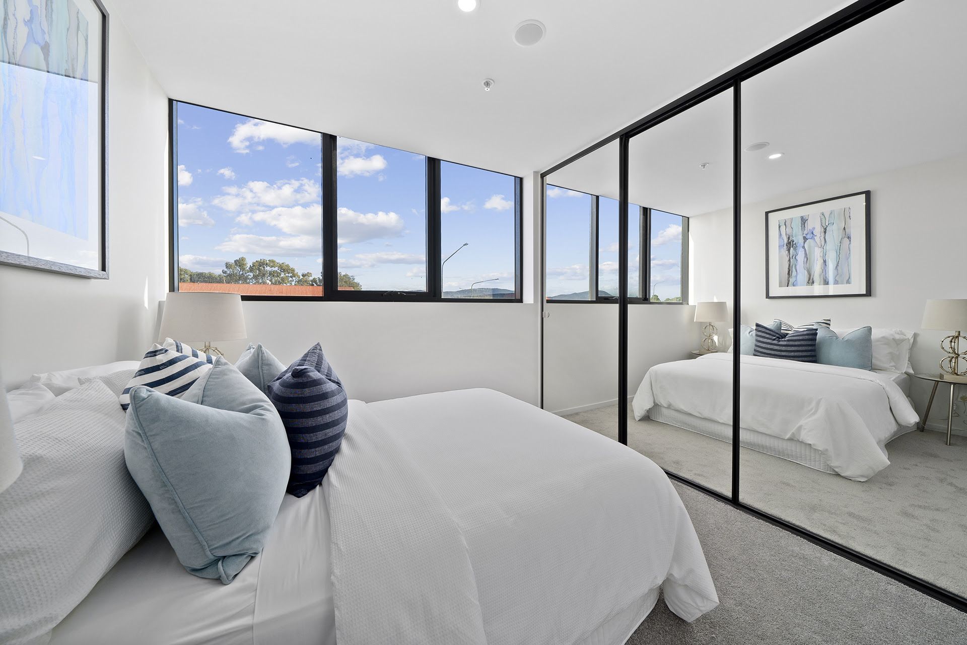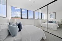 The bedroom is well-sized and features plush textured carpet for added comfort. The apartment also has a bathroom and a basement car space that can be accessed directly via one of six lifts.